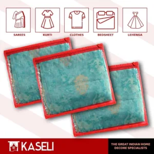 Durable, lightweight, and foldable, this red saree cover set is an essential wardrobe organizer for every Indian household.